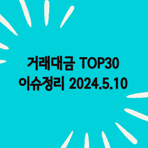주식 시장에서 거래대금은 매우 중요한 지표입니다. 거래대금 상위주를 살펴보면 그날의 시장 동향과 투자자들의 관심사를 파악할 수 있습니다. 오늘은 2024년 5월 10일 기준 거래대금 상위 30개 종목의 주요 이슈를 살펴보겠습니다.