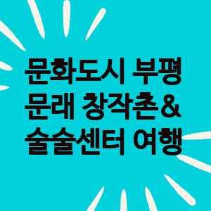 문래창작촌에서는 예술가들의 작업 공간을 둘러보고, 갤러리와 카페를 방문할 수 있습니다. 또한 다양한 문화예술 행사와 축제가 열리니 관심 있는 프로그램을 찾아볼 수 있습니다. 술술센터에서는 전시, 공연, 체험 프로그램 등 부평구의 문화예술 활동을 경험할 수 있습니다. 특히 지역 주민들이 직접 참여하는 프로그램이 많아 지역 문화를 이해하는 데 도움이 될 것입니다.